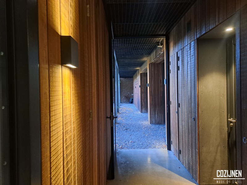 Het gebruik van hoogwaardige staalprofielen zorgt niet alleen voor een tijdloos en luxe aanzicht, maar biedt ook de gewenste veiligheid voor de bewoners. De deuren zijn volledig op maat ontworpen, zodat ze naadloos aansluiten op de architectuur en perfect functioneren binnen de specifieke situatie van het complex.