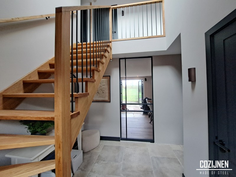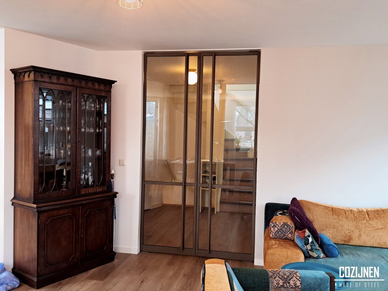 De brede stalen taatsdeur, met een breedte van 150 cm, is een ware blikvanger in uw interieur. Het robuuste stalen frame en de hoogwaardige afwerking stralen verfijning en duurzaamheid uit. Deze deur is niet alleen een functionele scheiding tussen ruimtes, maar ook een stijlvol designelement dat een moderne en industriële touch aan uw woning toevoegt.
