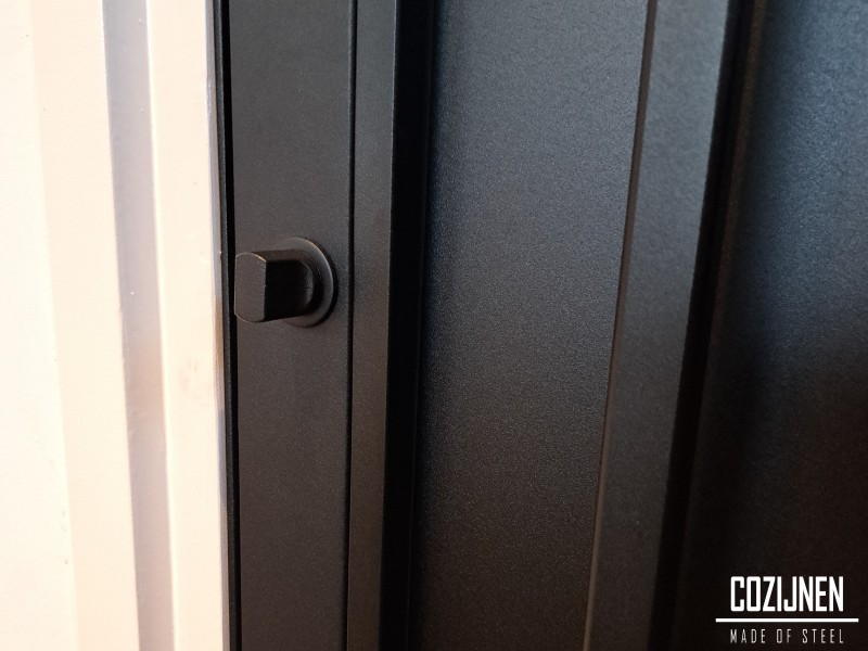 Deze stalen toiletdeur combineert functionaliteit met een stoere, eigentijdse uitstraling. De glasvakken zijn voorzien van een stalen plaat, wat zorgt voor optimale privacy zonder concessies te doen aan het karakter van de deur. De robuuste uitstraling wordt versterkt door het slanke stalen profiel en de strakke belijning. Bovendien is de deur uitgerust met een slot met een subtiele draaiknop, waardoor gebruiksgemak en een nette afwerking perfect samenkomen. Ideaal voor een industrieel of modern interieur.