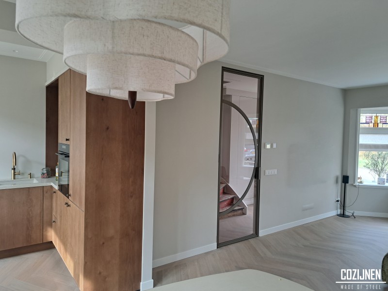 Dankzij de slanke stalen profielen oogt de deur luchtig en minimalistisch, waardoor hij naadloos aansluit in een modern interieur. Een perfecte combinatie van functionaliteit en design, waarbij sfeer en gebruiksgemak hand in hand gaan.