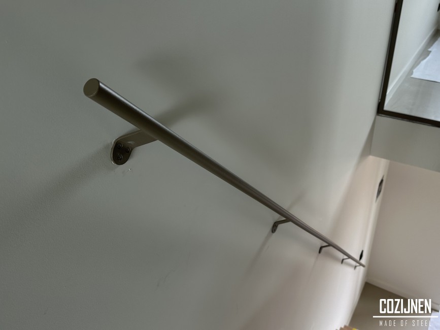 Het design van de trapleuning is zowel strak als elegant, passend bij een moderne en minimalistische stijl. De zuivere lijnen en subtiele details zorgen ervoor dat de leuning niet alleen een praktische functie vervult, maar ook een designstatement maakt. De stalen constructie garandeert duurzaamheid en stevigheid, zonder concessies te doen aan het esthetische aspect.