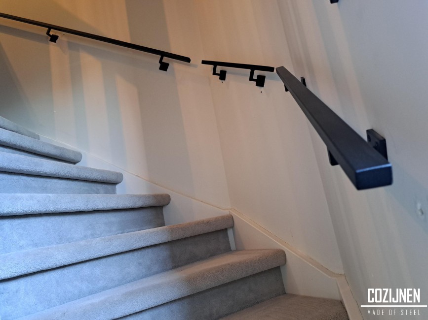 De stalen trapleuningen zijn geplaatst ter vervanging van de standaard nieuwbouwleuningen en tillen het interieur direct naar een hoger niveau. Waar de oorspronkelijke leuningen vooral functioneel waren, voegen deze stalen leuningen karakter, kwaliteit en uitstraling toe.